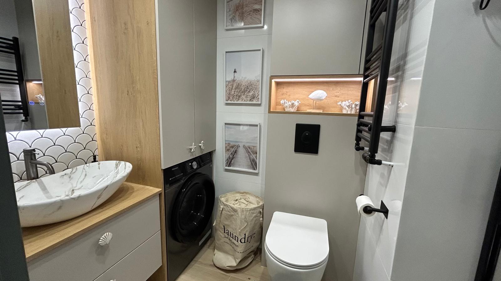 Zarówno kuchnia jak i łazienka jest kompleksowo wyposażona w nowy, nieużywany sprzęt AGD objęty gwarancją producenta.