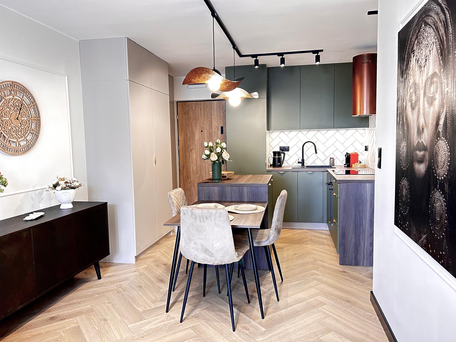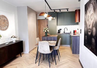Aranżacja została wykonana przez architekta, który stworzył wnętrze nie tylko efektowne, ale także ergonomiczne.