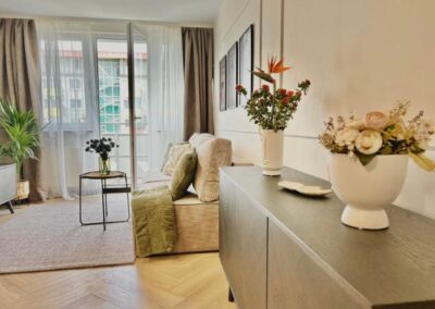 Mieszkanie znajduje się na 8 piętrze z 11 w zadbanym bloku przy ulicy Skwierzyńskiej na Krzykach. Jest to świetna lokalizacja zarówno przy prywatnym użytkowaniu, jak i inwestycyjnym.